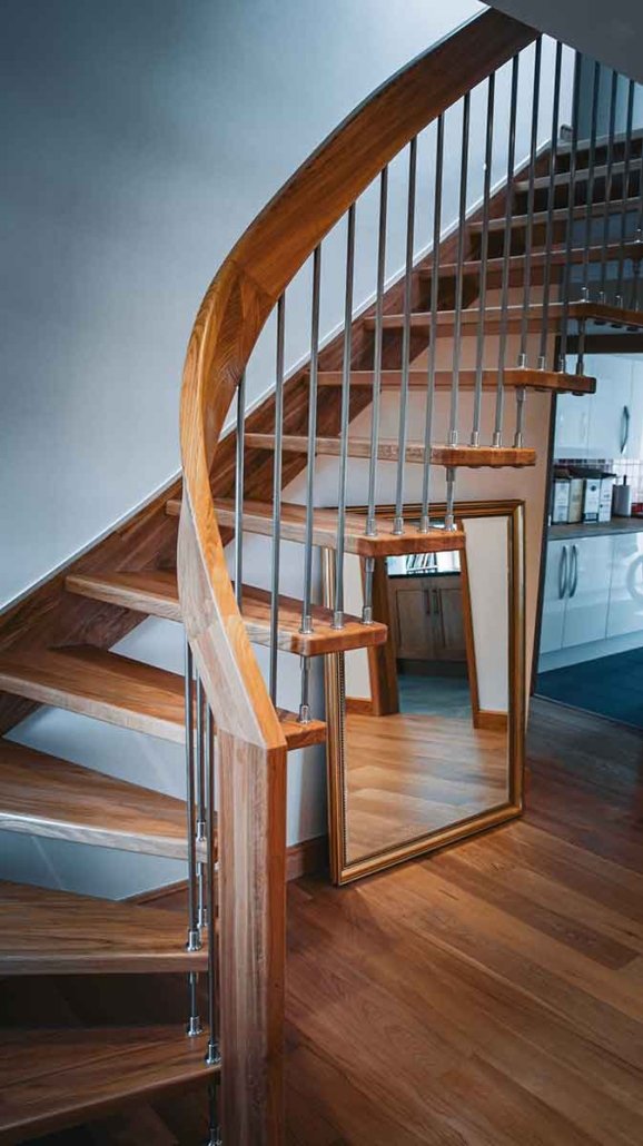 In Botley, Hampshire, we supplied a bespoke WF floating timber staircase for a contemporary new build. This staircase was designed to complement the home’s architectural lines while ensuring maximum light penetration and a visually light appearance that enhances the open interior.