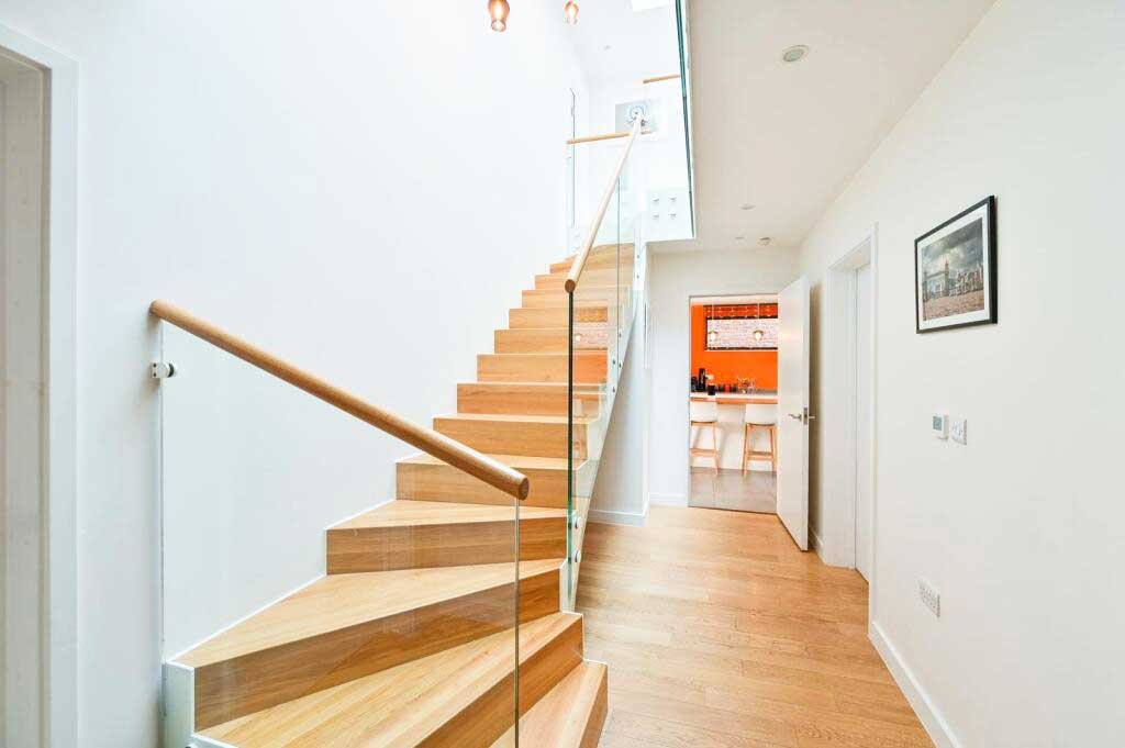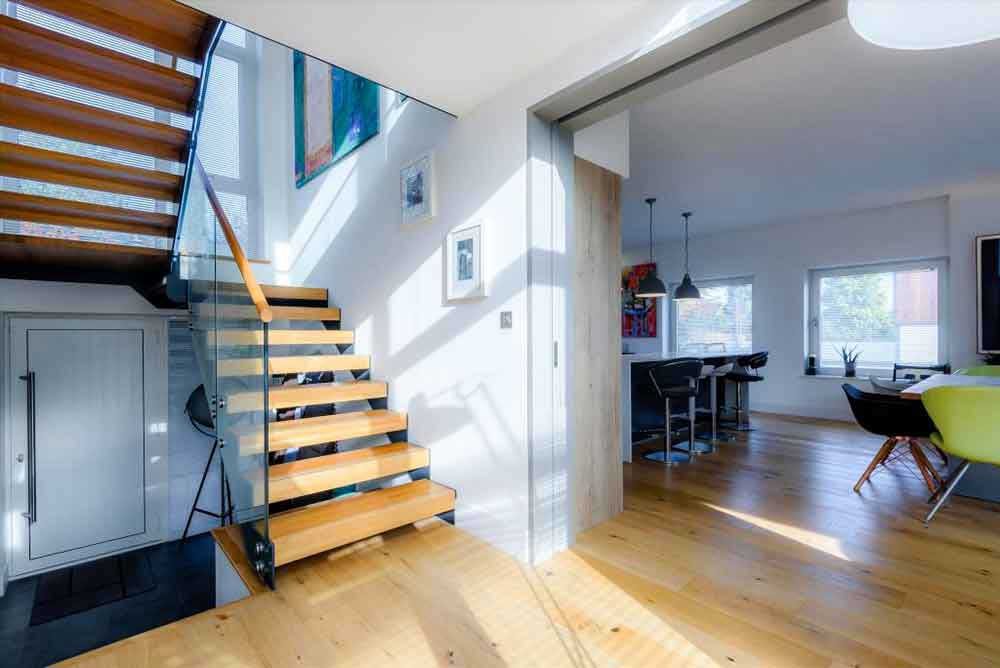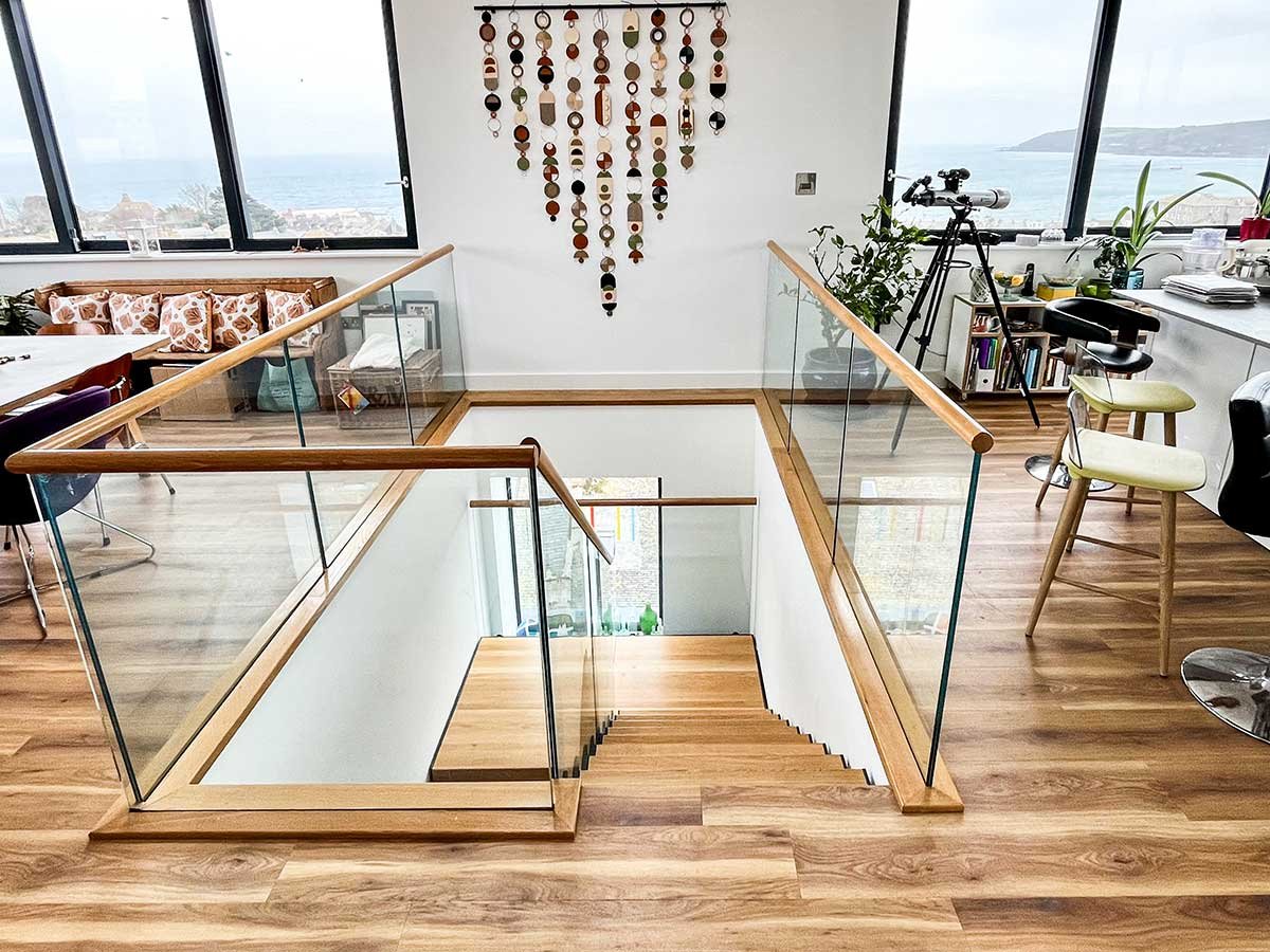 Open risers allow light to pass freely between floors, and many clients choose frameless glass balustrades to further enhance the bright, minimal feel of the design.
