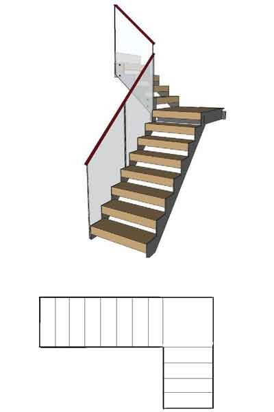 The stair is made to measure so can be produced to a number of different configurations. It is the floor to floor height and the available stairwell size that will determine the correct shape of staircase.