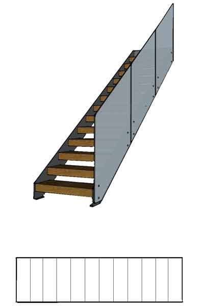 There are three standard stringer shapes for this staircase and there is no cost difference between them. These are normally powder coated to a RAL colour or supplied in stainless steel.