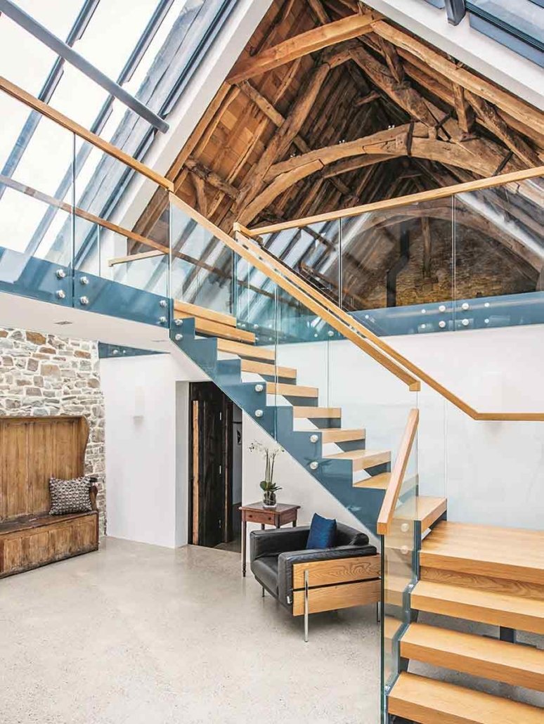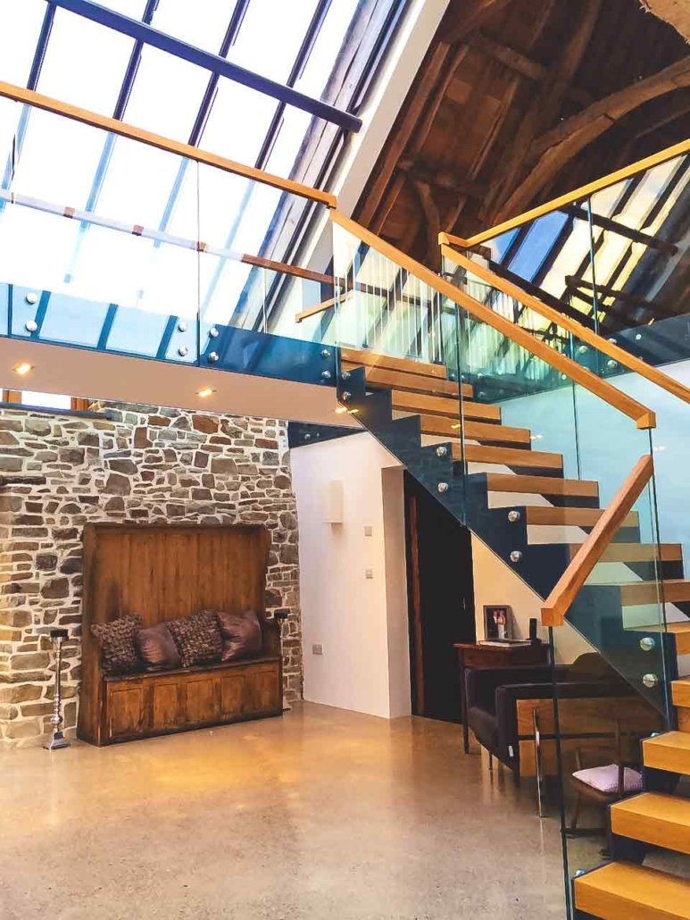 This project involved providing a bespoke Model 500 staircase for a historic barn conversion in Bude, Cornwall — a significant restoration and conversion of a traditional agricultural building into contemporary living spaces. The transformation required a staircase that complemented the open, light‑filled interior of the barn while respecting its heritage features and expansive volumes.