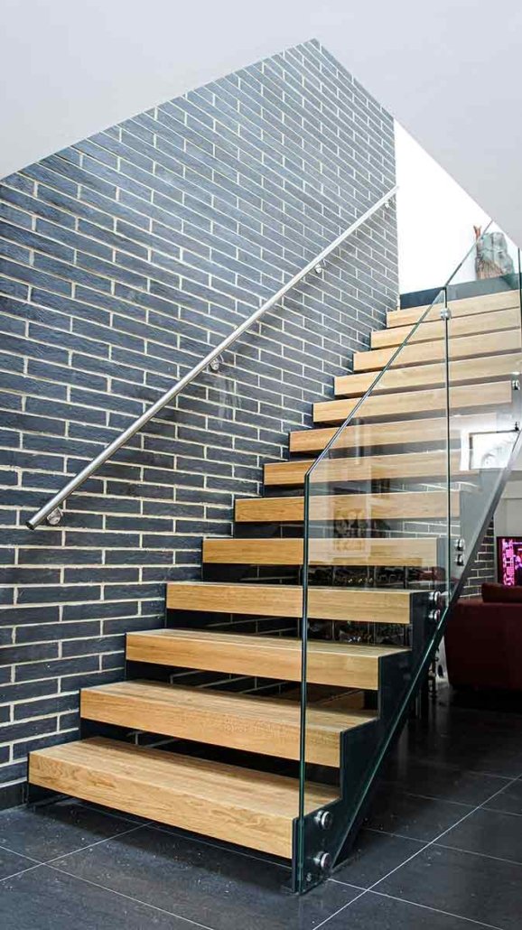 The clients were building a contemporary home in Stamford and wanted a staircase that would not only connect their lower and upper living spaces but also maximise the abundant natural light flooding through large rear windows. They specified an open, modern design with glass balustrade and open risers to keep sightlines clear and enhance the sense of space.