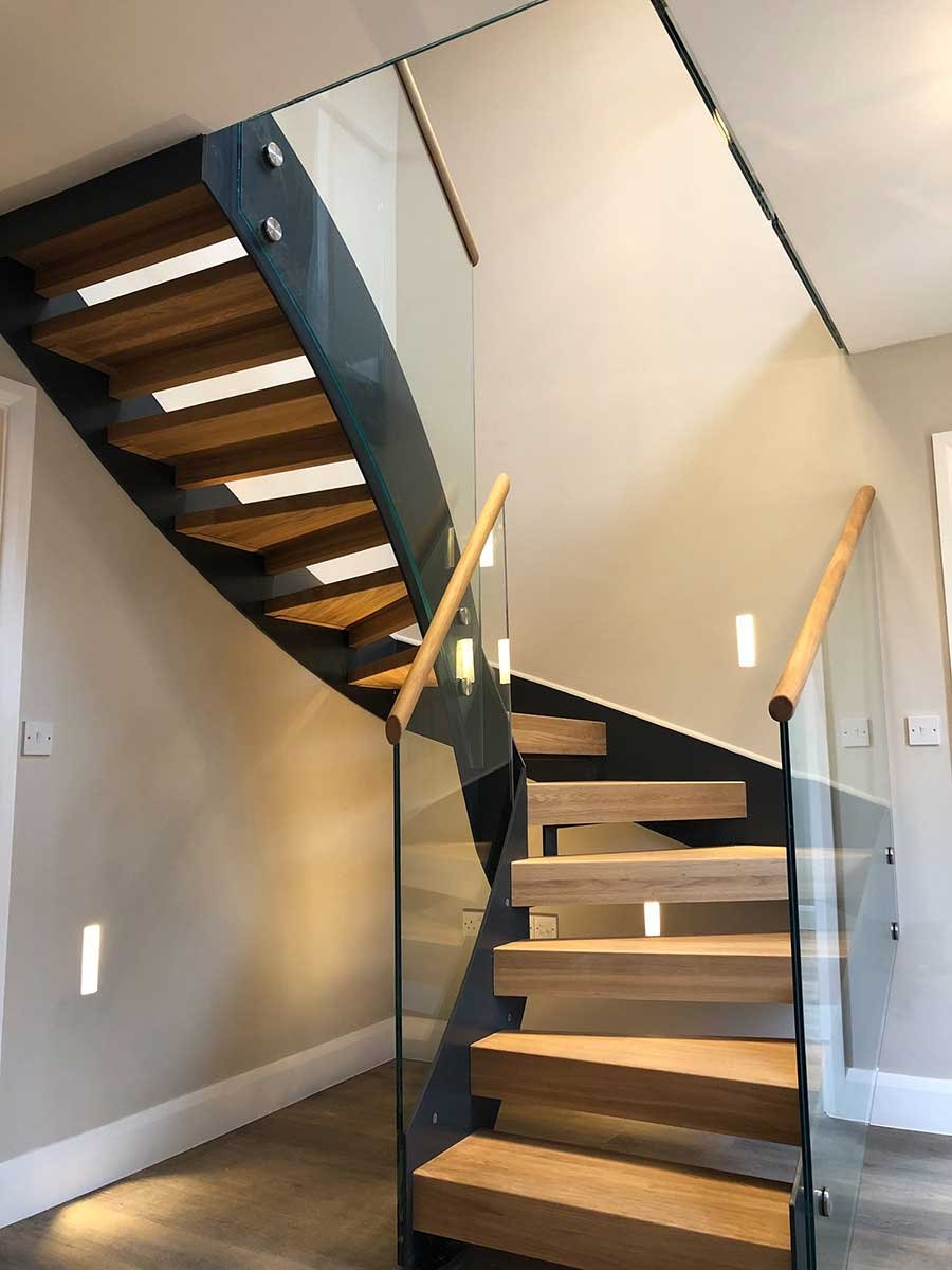 modern stair in Broughton with oak treads and glass balustrade