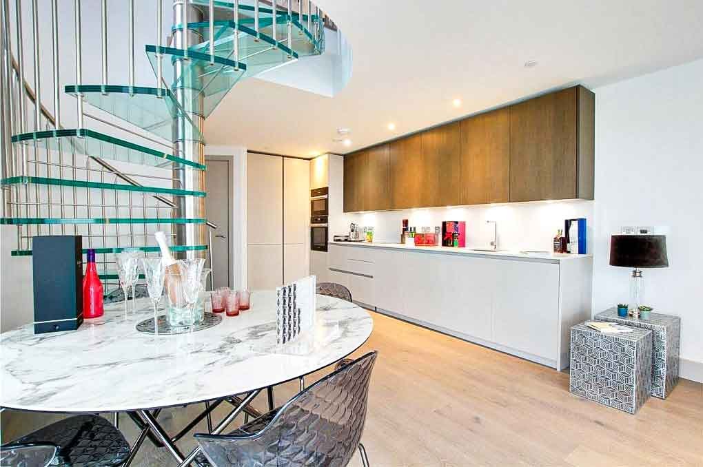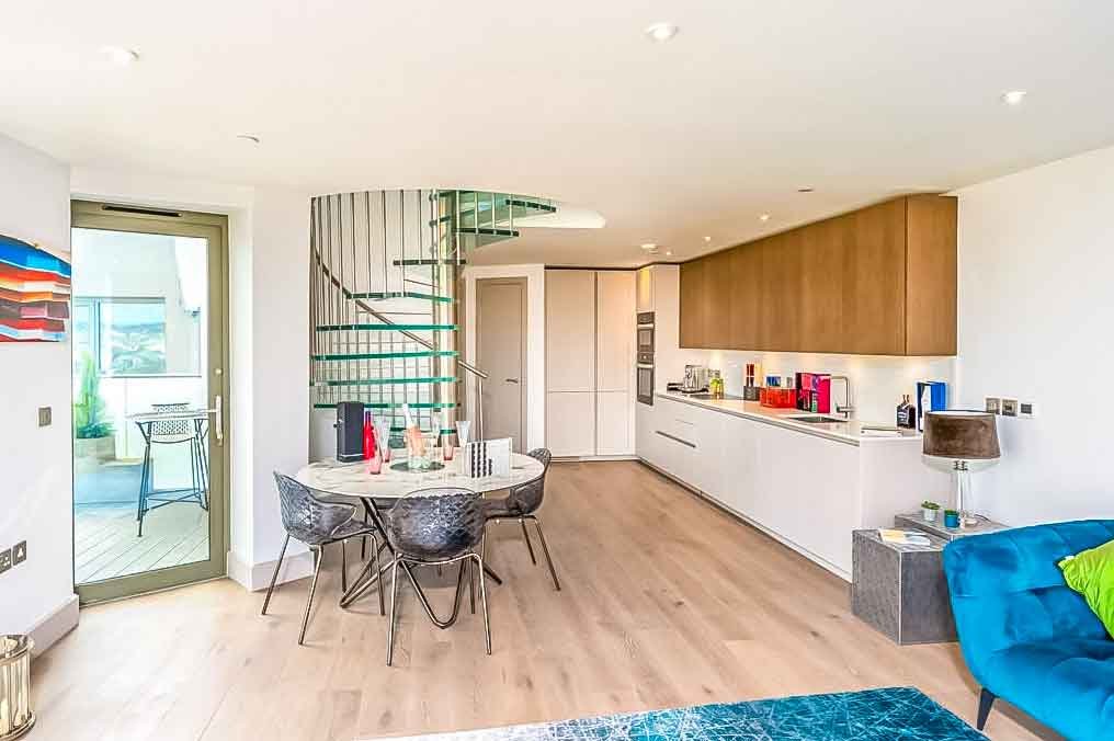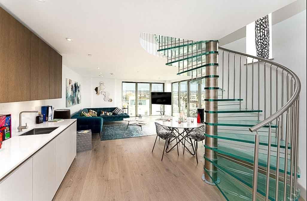 This bespoke glass spiral stair was designed and manufactured for a luxury penthouse apartment in Brighton as part of a high-end new build development.