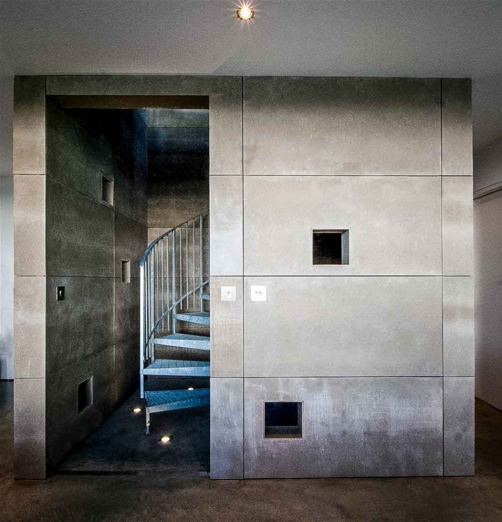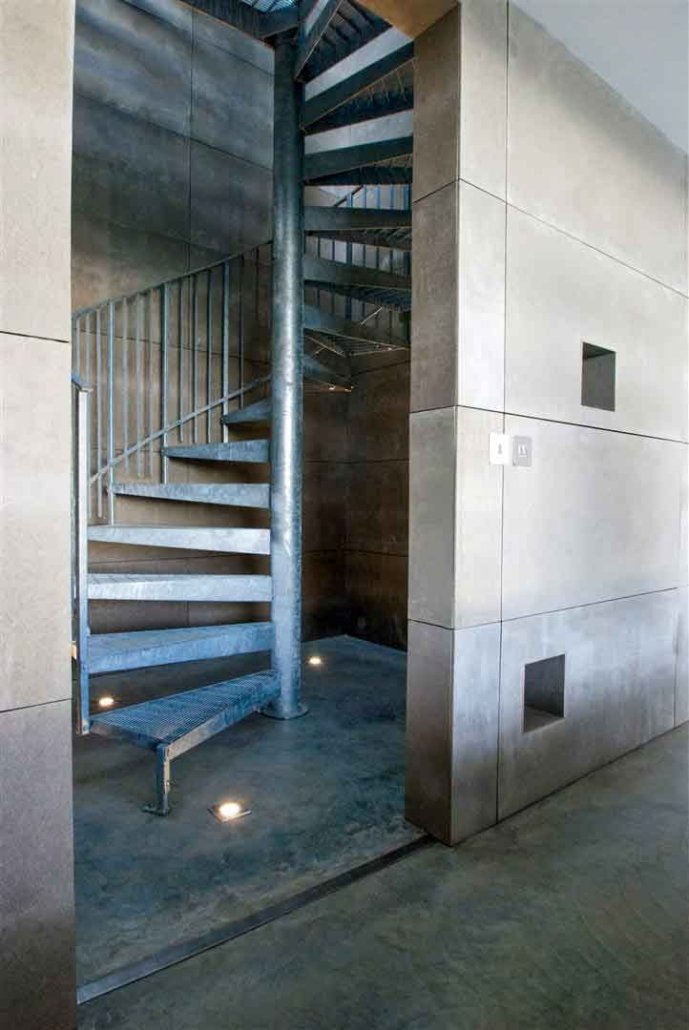 An amazing look created by using effectively a galvanised fire escape in a new modern dwelling.