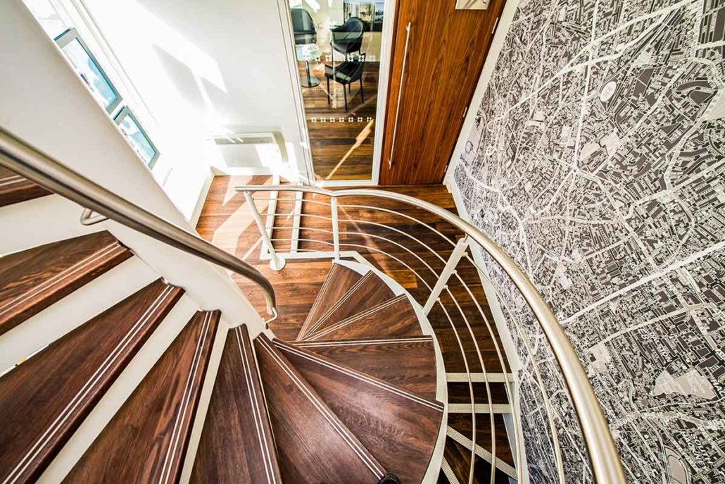 This project featured a double-flight spiral staircase for Knight Frank’s estate agent in Islington, North London.