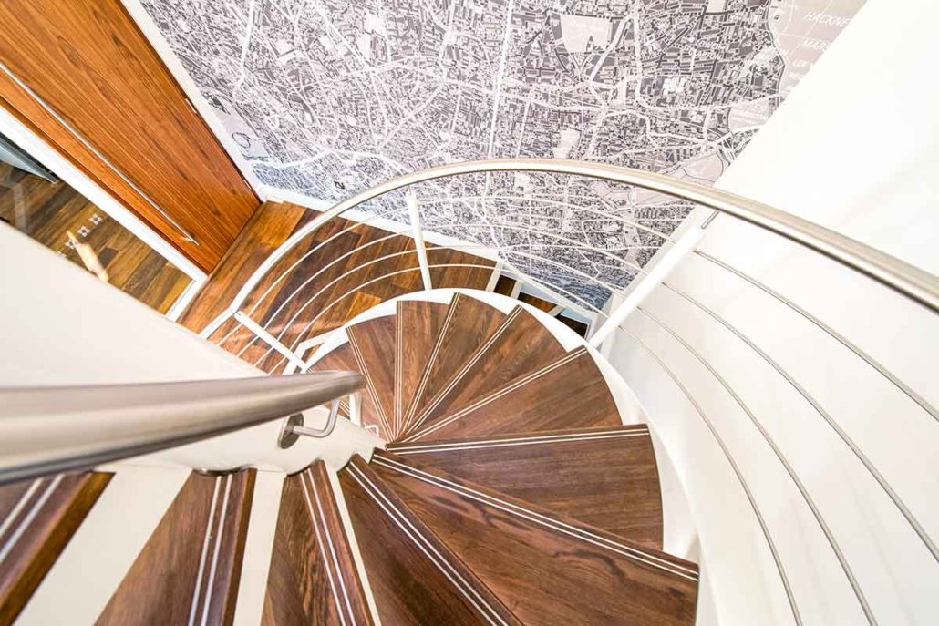 They wanted a space-efficient way to access the upper two floors while creating a striking first impression upon entry. Spiral staircases have long been seen as elegant sculptures that bring a sense of gravitas to a building.