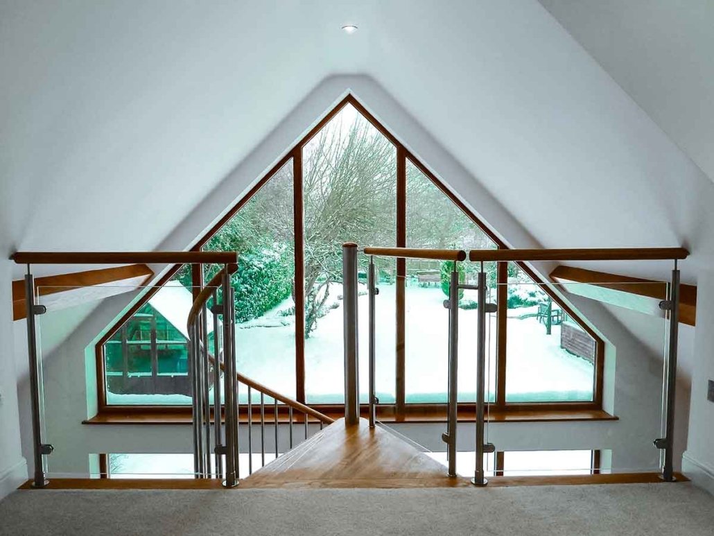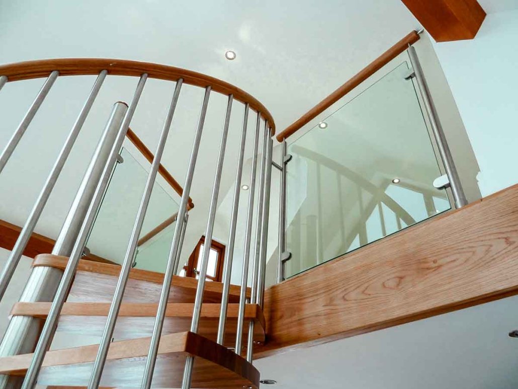 To respect the original character of the property, we proposed hard wearing oak treads with a low maintenance, hard wearing satin lacquer. To keep within budget, we then proposed brushed stainless steel spindles for the balustrade infill. Not only are these easy to maintain, but they also helped to give a modern aesthetic to stay in keeping with the rest of the extension. To stay in keeping with the treads, we finished the balustrade with a curved oak handrail. The open risers on the staircase allowed the light to flow in through the large window at the front of the property.